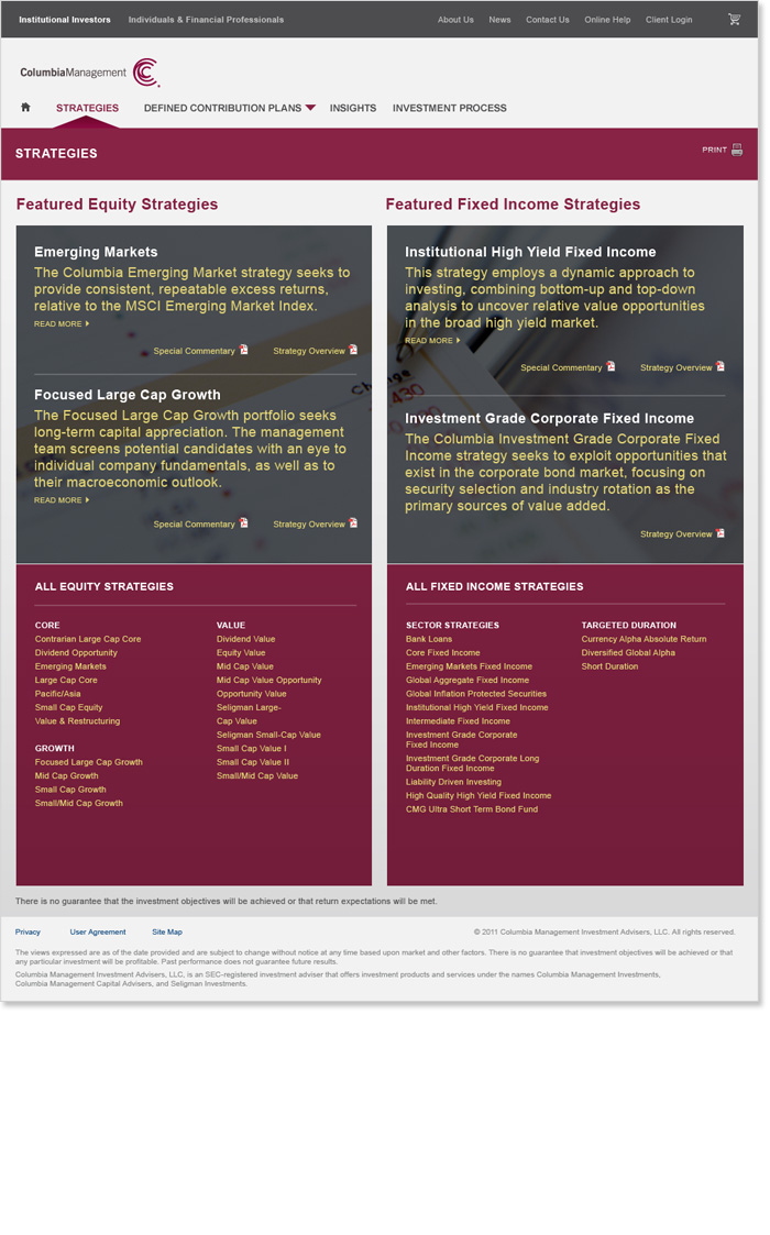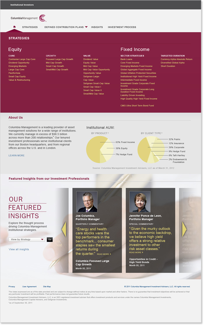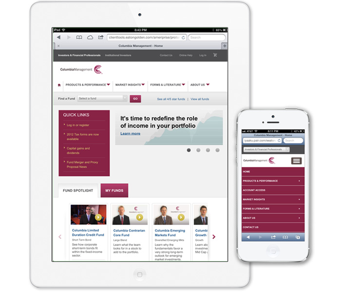 The Columbia Institutional site was redesigend with responsive code in place for future implementation