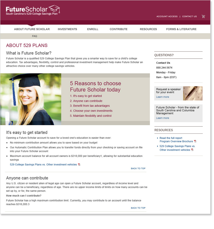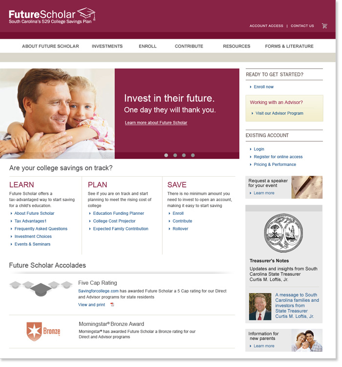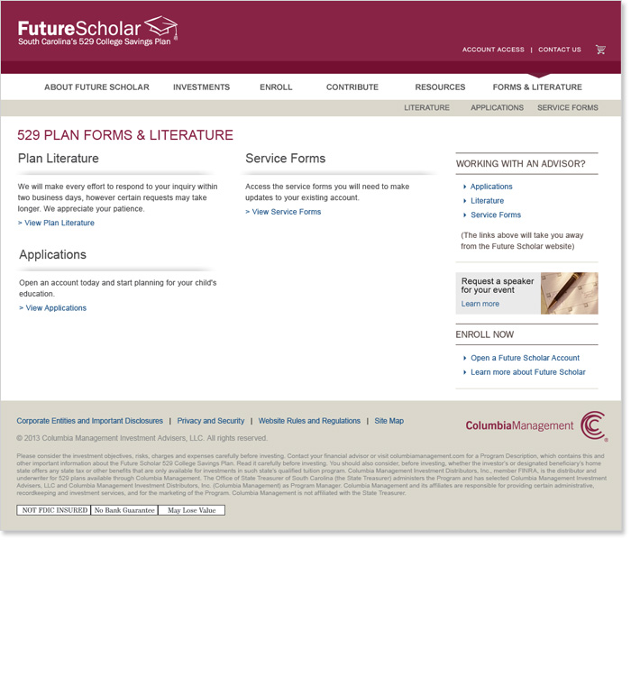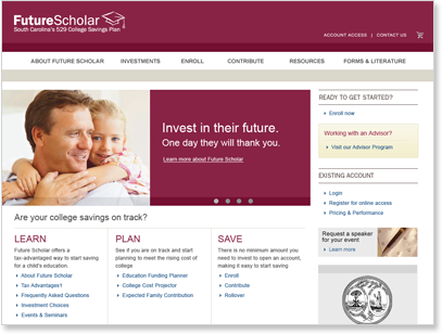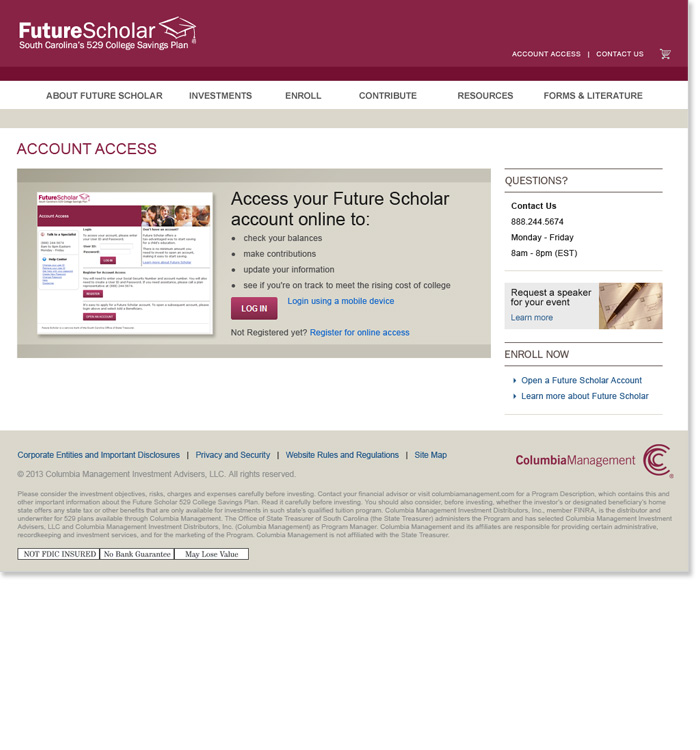 Rounding out the Columbia Management Brand properties, the Future Scholar site is geared toward the 529 category of investments for college savings.