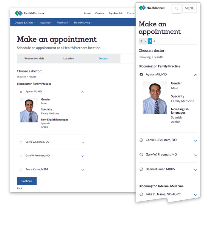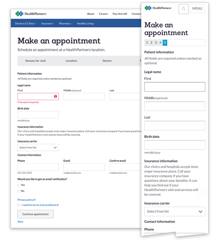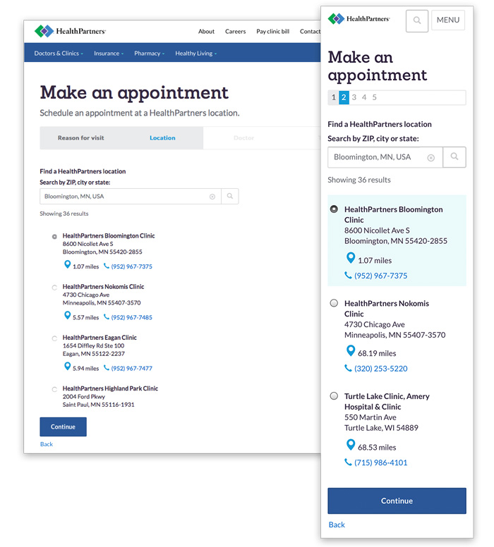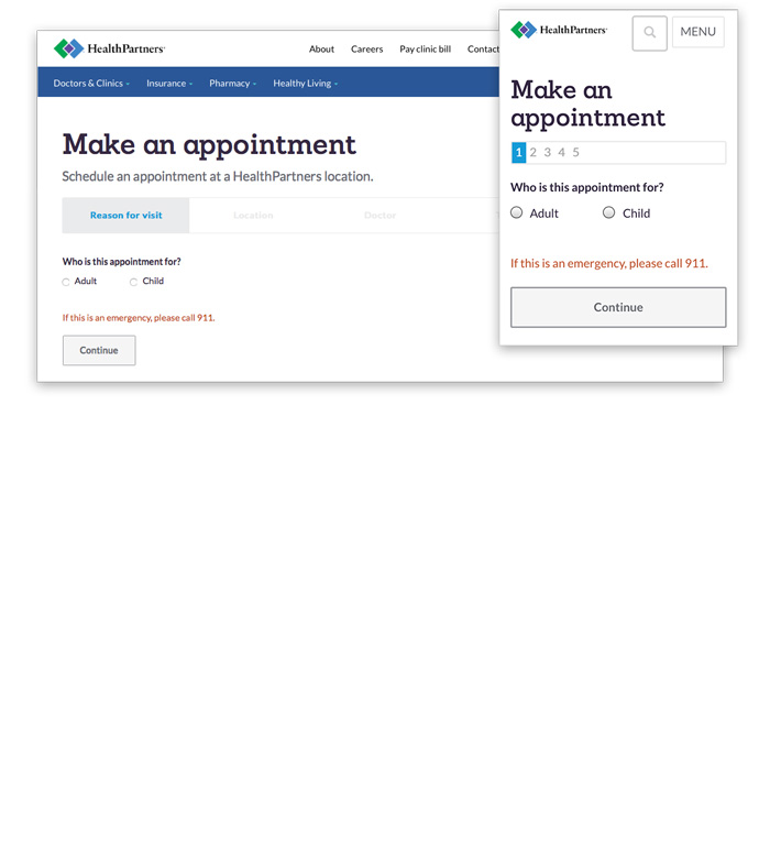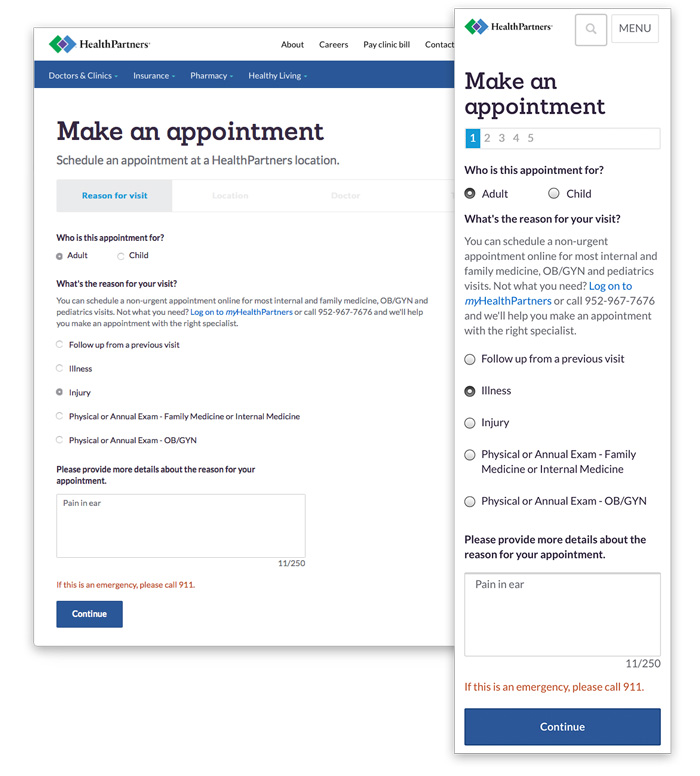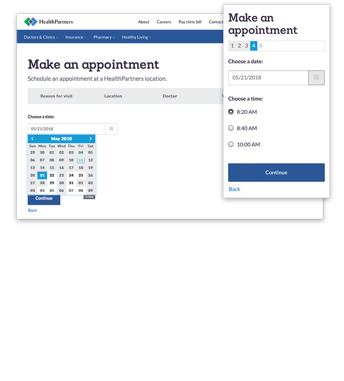 HealthPartners appointment scheduling flow (UX/UI)